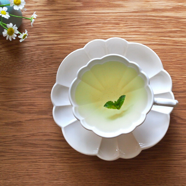 エレガントな雰囲気によく合う淡いパステルカラーの白・ペールピンク・ペールグリーンの3色は紅茶、ハーブティー、コーヒーなど飲み物の色が映える色味です。おうちでのんびり過ごす時、大切なお友達をお迎えする時、そして華やかで繊細なデザインはギフトにもぴったりですよ。