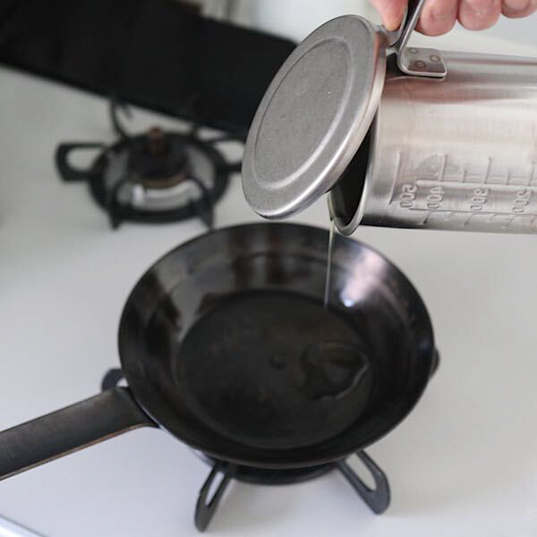 小さいサイズは300ml。少量の油で揚げ物や揚げ焼きをする方、油慣らしをした後の油を戻すとき、勢いよく油を出し過ぎちゃったとき、そんな時はこのサイズがちょうどよく感じると思います。オイルポットに並々と油を入れてお使いになる方は少ないと思いますので、適量を保存できるこのサイズ感は嬉しいですね。