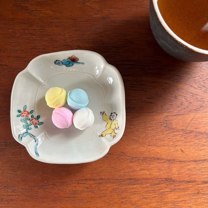 それでは最後に堀畑さんのコメントをご紹介「5種類の豆皿は松やお花、鳥、唐子が着ている洋服も全て異なるため、ついつい集めたく豆皿になると嬉しいです。さまざまな日常のシーンでさりげなく登場させてください」。小さな唐子の豆皿が食卓に飛びきりの明るさを添えてくれます。お気に入りをひとつずつ集めてください。