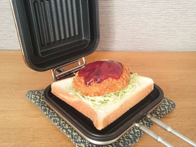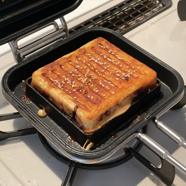 家事問屋のホットパンがすごいのは、これでもかっていうくらい多くの具をしっかりプレスできるところ。パンと具をはさむ本体が深いので具をたくさんはさめます。以前持っていたホットサンドメーカーは、はじっこの耳の部分のところから具がでちゃったりしていたのですが、家事問屋のはぐるりと囲む仕切りでギュッとプレスされてはみ出る心配がありません。フッ素加工されていて、目玉焼きを焼くこともできるし、洗うのもらくちん。パンだけでなくおもちや焼きおにぎらずもおいしく焼けますよ。