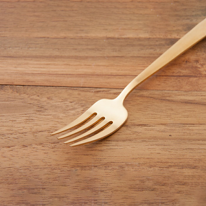 マットゴールドの輝きは、真鍮のような趣で落ち着きと気品を感じさせます。お気に入りの食器にケーキやタルトなどを載せて、紅茶をスタンバイしたら、とっておきの時間の始まり、始まり♪デザート用にもオススメですが、女性やお子様用の食事フォークとしてもどうぞ。