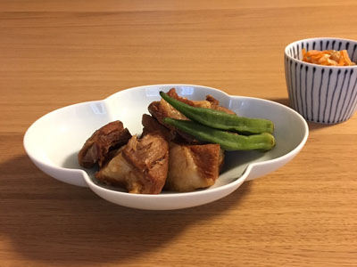 木瓜(もっこう)鉢って形、なんだか懐かしくってほっこりします。いつも丸や四角のお皿を使ってるのでうまく使いこなせるかな?と思ってたのですが、このお花の形が私でも盛り付け上手にみせてくれる気がします。メインのおかずをのせるのにぴったり。我が家にいっぱいある白山陶器の器に色味が合います。