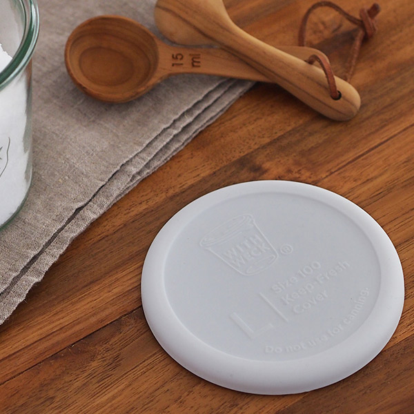 口径Lサイズ用のシリコン製フタが登場です。シリコンならではの柔軟性がポイントで、フタの開け閉めが簡単&密閉性が抜群なんです。液体を入れて横にしても漏れないので、冷蔵庫のドアポケットに入れられなかった大型のウェックや出汁やドレッシングを立てて置けない時も横にして保存することが可能。また、アウトドアなどでウェックにお弁当のおかずを詰める時も汁漏れを気にせず持ち歩くことができますよ。カラーは中がうっすら透けて見える「クリア」、清潔感がありこれまでのプラスティックカバーとの相性もいい「ホワイト」、キッチンのアクセントにもなるスタイリッシュな「ブラック」、何にでも合わせやすいニュアンスカラー「オリーブグレー」の4色からお選びいただけます。