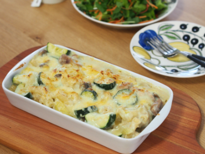 ズッキーニをたくさん入れたグラタンを作りました。二人分のグラタンやグリル料理の副菜には使い勝手がいいと思います。小さめのトースターだと持ち手部分が少しひかっかるのでトースター利用の場合はサイズ確認をおすすめします。