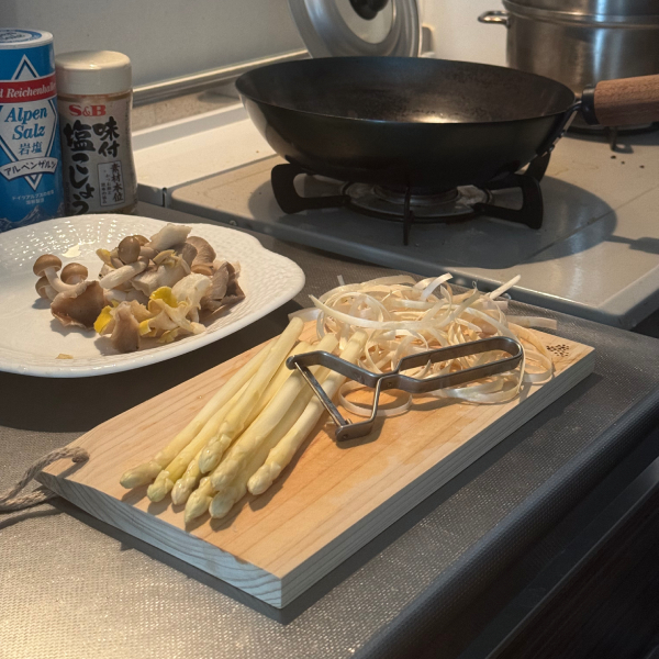 アスパラガスのような繊細な野菜も、すっとなめらかに。 このピーラーは、あのGLOBAL包丁と同じ素材で作られていて、手に持ったときの質感が本当に気持ちいいです。 軽い力で均一に皮がむけて、毎日の料理がちょっと楽しくなる道具。 2年経ってなお新品のような質感を保ち、使うたびにその確かな違いを実感できます。