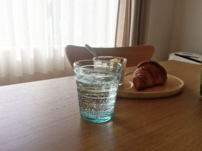 イッタラのグラスはカルティオもアイノ・アアルトもカラーバリエーションが豊富なのがうれしいところ。全部同じ色でもいいですが、色違いで人数分揃えるのも素敵です。水の波紋にインスピレーションを得たデザインのアイノ・アアルトのグラスのなかでも沖縄の海の色のようなウォーターグリーンがお気にいりです。