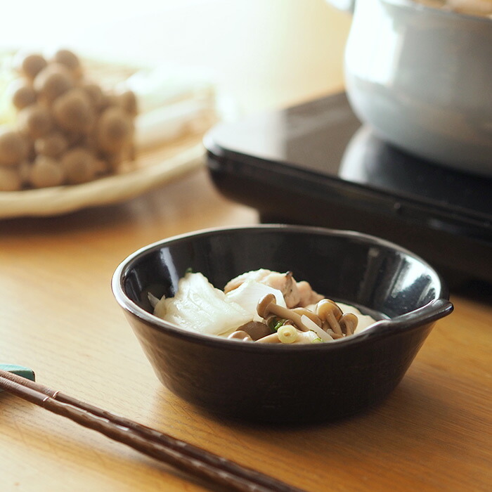 萬古焼で作られたちょっと大きめサイズのとんすいです。とんすいは主に鍋料理を食べるときに使う取り分け用の小鉢のことで、縁に持ち手がついてるのが特徴。4th-marketのとんすいは一般的なものより大きく深さがあるので、具もスープもたっぷりと盛りつけられ、レンゲなどを使うシーンでも食べやすいように作られています。気持ちよく手に収まる器からは土物らしいざっくりとした質感と、柔らかく温かみのある風合いが心地よく伝わってきます。シンプルなデザインはどんな食卓とも相性がよいだけでなく、天ぷらを食べるときのつゆを入れる器に使ったり、スープボウルとして使ったり、サラダや副菜を入れる小鉢としても。同色で揃えてもすっきりとまとまりますが、敢えて違い色で揃えても温かな食卓が生まれそうです。