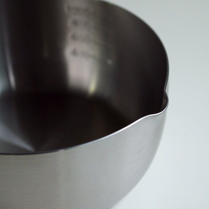和食づくりに欠かせない煮炊きに適した丸みを帯びた雪平鍋の万能性を残しつつリデザインして誕生したのがアンバイの雪平鍋です。鍋の素材はアルミニウムとステンレスの三層鋼材で、内側は焦げ付きや汚れが落ちやすい仕上げが施されています。取っ手にはチーク材を使用し快適な握り心地とデザイン性をプラス。他にもスタッキングが出来るサイズ展開、鍋の内側に記されたメモリ、注ぎ口付き、オール熱源対応など台所に立つ時間が快適になるこだわりの要素が満載に詰め込まれています。さらに、別売りステンレスの兼用蓋、落し蓋(鍋と同じサイズ)を一緒に使うことで料理のレパートリーがぐんと広がります。