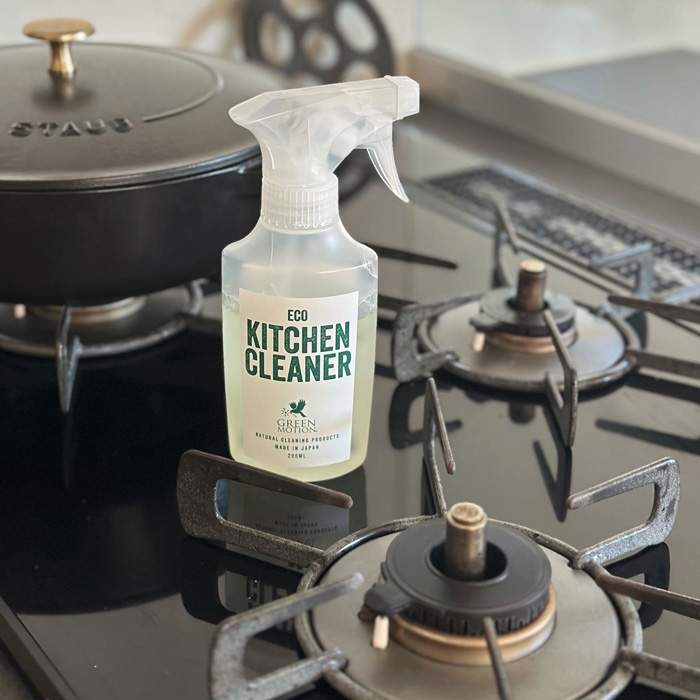 コンロを使えば避けられない「油はね」。我が家はよくある油汚れ用洗剤を使っていましたが強すぎて手が痛くなるほど荒れてしまいました。そんなときに出会ったのが「グリーンモーション」。海洋タンカーの事故処理研究から生まれた少量でも高い洗浄力と分解力を兼ね備えた、環境に優しいキッチン洗剤…なんと原油を処理できる技術がご家庭に?!しかも手荒れの心配がなく水に戻るエコ仕様で即導入。コンロに吹きかけると「ヒバ」の清々しい香りに包まれ思わず深呼吸。今では手放せない存在です。