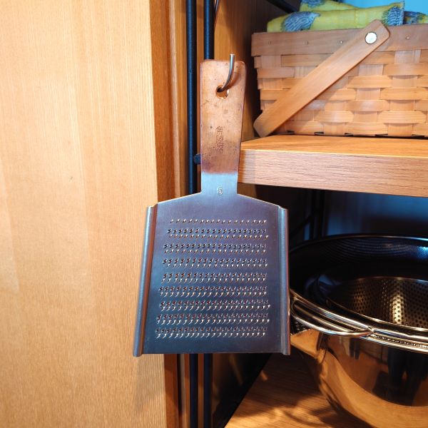 私にとって大矢のおろし金は「清水買い」でしたが、本当に買ってよかった!食材がとってもなめらかにすりおろせます。銅製ってお手入れが面倒では?と思っていたのですが、注意点をクリアすれば難しいことはありませんでした。大事なのは錆びさせないこと。そのため、使い終わったら食材が残らないようすぐ洗う&水分を拭きとる。おおざっぱな私は拭いた後、キッチン棚にぶら下げて終了。ちょっとくらい水分が残っててもこの方法で今のところ錆びていませんので、おすすめです。