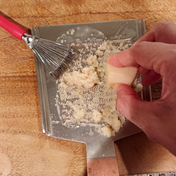 ひとつで大根も生姜もいい感じにおろせるものがないかなとスタッフに相談していたところ、中澤が「私は大矢さんの両面使ってますよ」と鶴の一声。それだー!ということで二人家族の我が家は5号を購入しました。まずは大根、次に生姜をおろしてみたのですが、とにかく早い!あっという間にすりおろすことが出来ます。もちろん仕上がりは期待通りのなめらかさ。写真は生姜ですが繊維を残さずおろせているのがわかりますか? もっと早く買えばよかった~。一生ものの道具として大事に使いたいです。