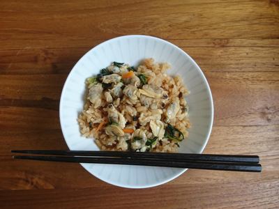 以前から、白山陶器の平茶碗を愛用しています。新年を迎える前に、すっきりとした縦じま柄の「十草」にしてみました。広めの口が、鉢としても使えるのが気に入ってます。スタッフの三木に教えてもらったまいたけの炊き込みご飯を大盛りにしても上品にみえて、盛りつけたお料理を引き立ててくれます。毎日使うお茶碗を変えるだけで、食卓が新鮮になりました。