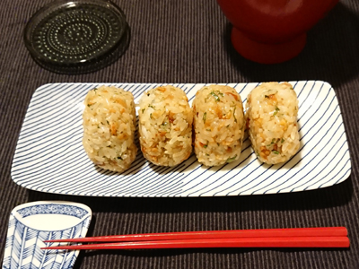 ネットで話題の「悪魔のおにぎり」を夕飯にリクエストされました。お茶碗2膳分くらいのおにぎりを長焼皿に盛り付けて。いつもはさんまや塩サバなど焼き魚のときに使うことが多いです。白山陶器の器はどれも和洋中を選ばず使うことができるのでとっても便利ですよ。