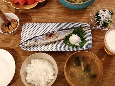 サンマにはこの長焼皿がお決まりです
