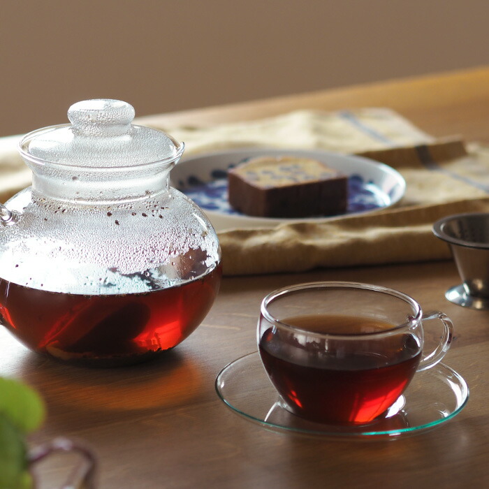 透明感の美しいガラスはお茶の色合いをダイレクトに楽しむことができるから、特に綺麗な色の紅茶を淹れるときは自ずと手が伸びるはず。背の低いころんとしたカップには指を安定してかけられる大き目のハンドルが付き使い心地も◎。
