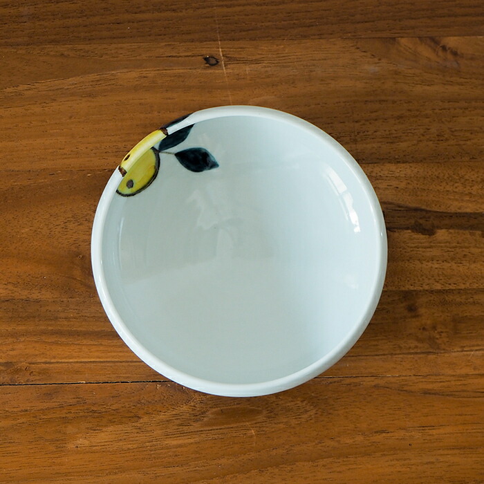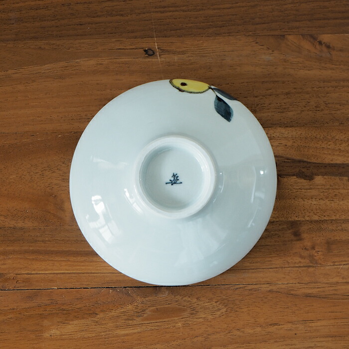 やや緑味を帯びた透明感のあるイス灰釉がみかんのモチーフを優しく引き立てる、色絵みかん。徳永遊心さんの人気モチーフのひとつです。果物の柄は得てして季節を限定してしまうことがありますが、みかんなどの柑橘類は種類が豊富のため季節を選ばず、さらにどの柑橘か曖昧にするようあえてシンプルに描き九谷五彩の黄色をアクセントに取り入れているのが遊心さんらしさ。