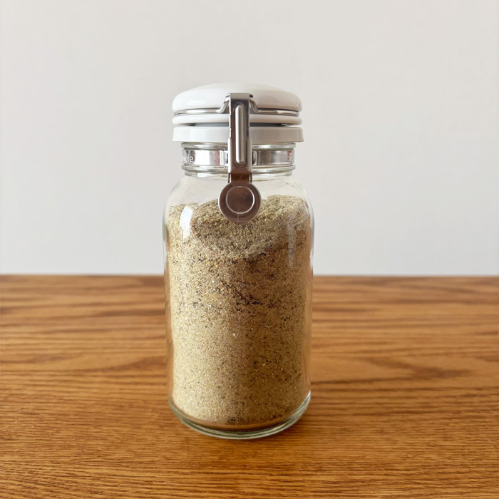 調味料や梅シロップなど液体の保存にはこれ!と人気の「セラーメイト ワンプッシュ便利びん」。ほぼ毎日作る味噌汁には、パウチタイプの煮干しの粉末を入れていて、小さいスプーンで粉末を使う分だけ出していたのですが、残りが少なくなってくると手が汚れてプチストレス...。粉物にも調味料びんが使えると聞いて入れ替えてみると、片手でポンと蓋を置けて振りかけるだけ!時短でノンストレス!これは革命でした!朝の忙しい時間の頼もしいアイテムです。
