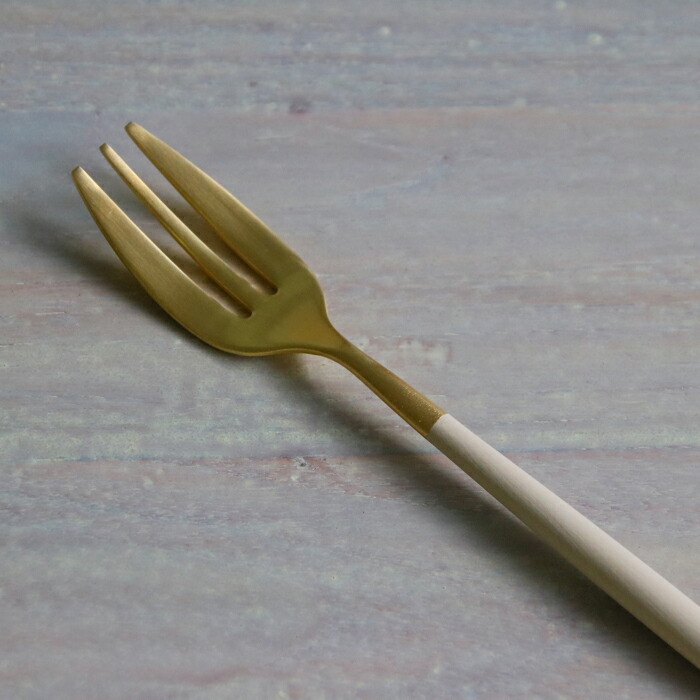 マットゴールドの輝きをワントーン落ち着かせているのが、温かみのあるアイボリーのハンドル。ミオ・アイボリー マットゴールドならカジュアルなシーンからいつもよりドレスアップしたい日まで、テーブルにさりげなく華をそえてくれるはず。ショートケーキにシフォンケーキ、果物たっぷりのタルトなど大好きなケーキを召し上がる時におすすめなのがペストリーフォーク。他にもフルーツやサラダを食べるときにもどうぞ。出番の多いカトラリーですので、おもてなし用にも何本か揃えておくと重宝します。