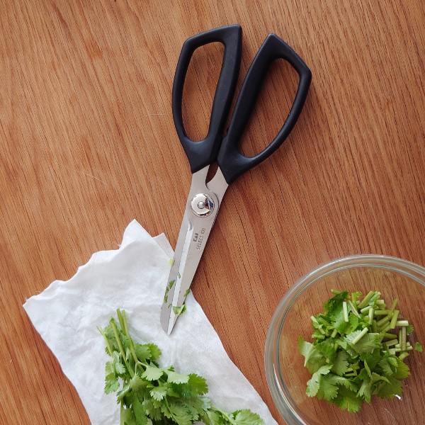 食卓によく上るパクチー。この日は前日に用意していたガパオにのせたい、けどそのためだけに包丁とまな板を準備したくない(洗い物増える)、といつも横着癖が。そこで目についたのがキッチンばさみでした。パクチーをさっと洗って美活クッキングで拭いたら、そのままボウルに向かってカットするだけ。いやー、楽ちん!今までは袋を開けるときに活用することが多かったのですが、今後は食材のカットにもどんどん使ってみようと思います。