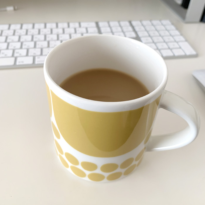 たくさん飲み物を飲む私には350mlの大容量がピッタリサイズ。たっぷりのコーヒーや紅茶を淹れて仕事のお供にしています。ヘビーユーズのマグカップは電子レンジが使えるのもポイントが高いです。スンヌンタイのカラシ色は落ち着いているのに可愛らしいのが魅力。夏はKINTOのダブルウォール。秋冬はアラビアのスンヌンタイのマグがデスクの定位置にいます。