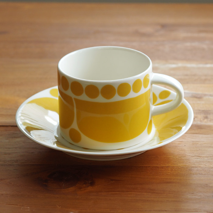 パラティッシやアピラシリーズを手掛けたビルカー・カイピアイネンの代表作のひとつ、スンヌンタイ(Sunnuntai)がパラティッシの誕生50周年を記念してアラビアから復刻しました。スンヌンタイとはフィンランド語で日曜日を意味する言葉で、当時は黄色の他に赤と緑が作られましたが今回は解放感のある明るい黄色が復刻に。製作期間が1971年~1974年と短いことから、ヴィンテージ市場でも目にする機会は少なくアラビアの中でも貴重なシリーズと言われています。