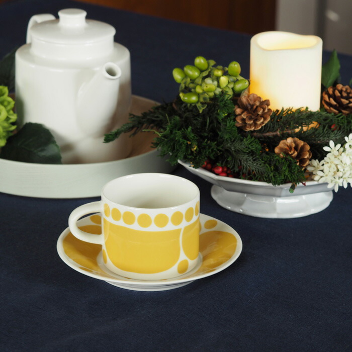 スンヌンタイに惹きつけられるのはレトロポップなデザインとモチーフが立体的に見えるところ。カップのデザインはモチーフの一部を切り取ったような斬新さがあり、プレート類とはひと味違うテイストに仕上がっています。誰もを明るい気持ちにさせてくれる温かみのある黄色で描く、大きく大胆な花のモチーフ。まさにリラックス感のある日曜の昼下がり気分をテーブルに届けてくれそうです。