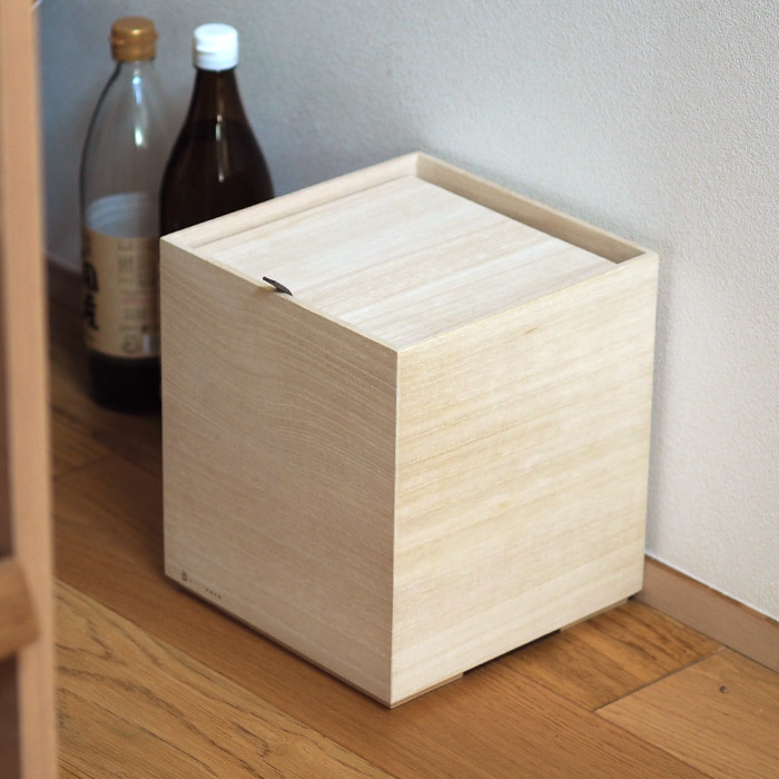 Lサイズは3~4人暮らしの方におすすめのサイズ。一週間分のメニューで使う根菜類をしっかりと保存しておけます。蓋は簡単に取り外しができるため、出し入れがとてもスムーズ。また増田桐箱店の米櫃5kgとモジュールが同じなため並べて収納した場合、キッチンキャニスターとしての美しい一体感が生まれます。ライフスタイルや保存する野菜の種類に応じて使い分けられるようSサイズとLサイズの2サイズから選べるのも嬉しいですね。