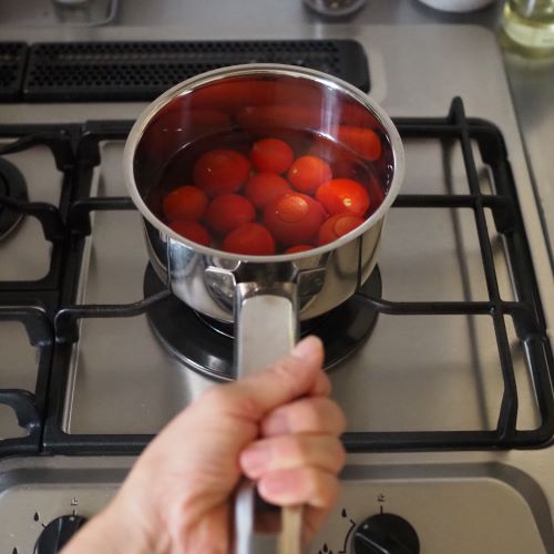 毎日の調理になにかと出番の多いソースパン。お湯を沸かしてミニトマトの皮を湯剥きしたり、野菜を茹でたり、ゆで卵をつくったりしますが、おっちょこちょいの私は熱くなる持ち手もパッと持ってしまい、熱いっ!となることが。だけどこの鍋はオールステンレスで熱伝導はとってもいいけど、取って部分は空洞で長めの作りなので温かいくらいで済むんですよね。子供が使うのも安心です。軽くて毎日使いやすさを実感してます。