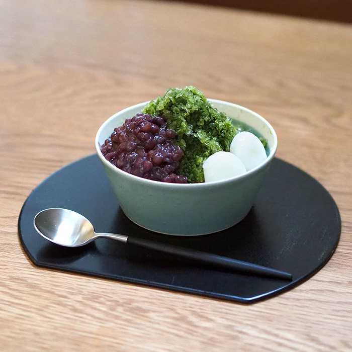 夏になると食べたくなる豆寒天。少しでも涼しさを味わいたくて選んだ器はカステヘルミです。朝露のしずくをイメージしたガラスの粒々が日に当たるとキラキラして寒天をよりひんやりと感じさせてくれます。合わせたカトラリーは柳宗理のティースプーンです。我が家ではヨーグルト、プリン、アイスとデザート用に愛用しています。和菓子系のデザートの時には半月盆があると一気にお店感が出るのでお勧めです。