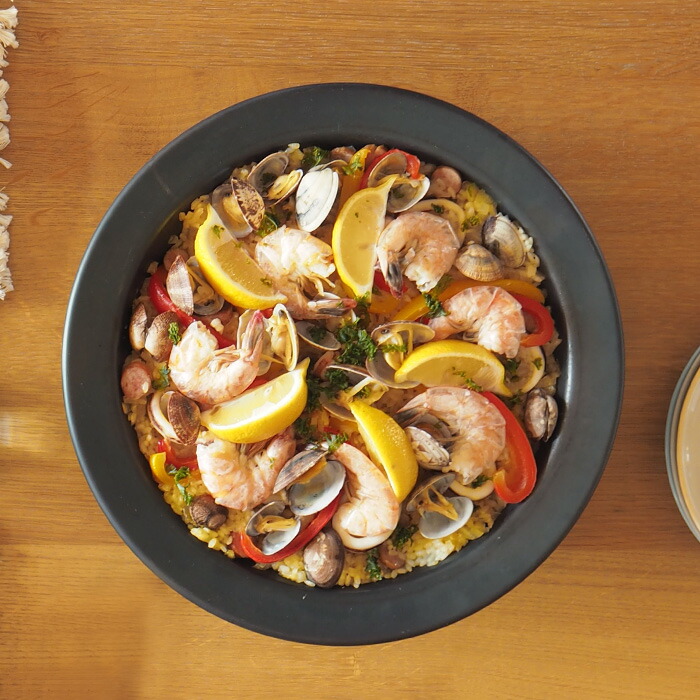 取り分けスタイルにおすすめのLサイズは、テーブルの真ん中で存在感を放つサイズです。魚介たっぷりのパエリア、ケチャップの焦げた香りに食欲が増すナポリタン。他にも買ってきたお惣菜を温め直してそのままテーブルへ出したり、キーマカレー作ったらその横にごはんを盛り付けワンプレートにしても。ステンレスのカトラリーを使用すると金属音がするため、気になる方は木製のカトラリーやお箸をお使いください。汁気のある料理も安心な深さがあり、底面はフラットな仕様になっているため、キャンプなどのアウトドア用にもおすすめです。