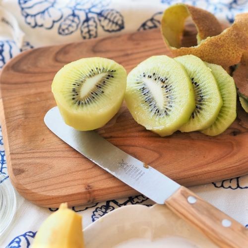 見た目からは想像できない鋭い切れ味によって、崩れやすいトマトや柔らかなパンにもスーッと刃が入ります。さらに硬さのあるチーズやサラミなどもスパッ、りんごの皮もするする、キウイやオレンジの皮だってサクッと切ることができます。そしてしなやかに湾曲するブレードはパンにクリームチーズやパテを塗ったり、瓶からジャムをすくうときも快適です。軽量で先が尖っていない安心感はアウトドア用としてもおすすめ。この1本があればあらゆるシーンに対応できるため、しまいこむ暇がないほど活躍してくれそうです。