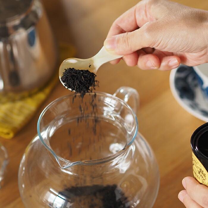 小ぶりのティーメジャースプーンは紅茶、緑茶などに。すくう部分は小さいながらも茶葉を適量すくうことができ、柄が短いので紅茶缶や茶筒に入れて使うことができます。お茶の時間を大切にしている方はその日の気分に合わせて飲めるように、茶葉を数種類ストックしていると思います。それぞれの容器にひとつずつ揃えておくと便利です。また、サンクのティー缶とも相性良し。ティー缶の中蓋の上に入れて置いても蓋がしまるため、一緒にお使いいただけます。裏側には水牛の角を模したロゴマーク入り。小さくとも存在感は抜群です。