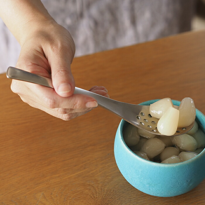 人気のれんげスプーンと一緒に揃えて欲しい穴あきタイプのれんげスプーン。穴あきタイプのスプーンは汁気を切りながら具材だけをすくいたい時に重宝します。担々麺の肉味噌や味噌ラーメンのコーンはれんげで食べると最後まですくいきれず丼の底に残りがち。ですが、穴あきスプーンを使いながら食べると最後まで美味しく食べることができます。他にもらっきょう漬けを取り分ける時や大根おろし、下ごしらえのシーンなら茹でたじゃがいもをマッシュする時にも良さそうです。