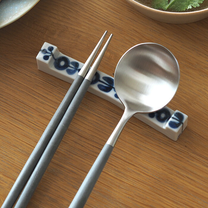 呉須の青色のみで描いた呉須輪花繋ぎ。凛とした藍色の濃淡が美しく、単色の花模様に柔らかな表情をもたらせています。箸がコロンと転がり落ちないように両端に高さを持たせ、細身のスティック型の箸置きは収納面でも優秀。お客様用にたくさん揃えたい方にもおすすめです。