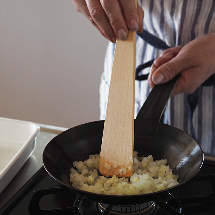 世の中にはあらゆる種類のキッチンツールがあり、ヘラひとつとっても素材・サイズ・カタチ・用途は千差万別。そんな中で「おっこれは!」と思う道具との出会いは小さな喜びをもたらし、料理のモチベーションにつながります。今から10年ほど前。店長みさこが気軽な気持ちで手にしたいちょうの木べらが「これ、使ってみて!すっごく使いやすいから!」とこれまでたくさんの人にプレゼントしているくらいのお気に入りの道具になったのです。