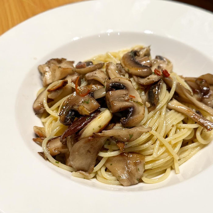 秋は是非「きのこのパスタ」を作って!きのこは3〜4種類入れると美味しいです。おすすめ4選は椎茸/マッシュルーム/舞茸/平茸。そしてアルミパンを使ってオリーブオイルとニンニク、唐辛子を熱し、きのこには少々のお塩を振って程よく水分が抜けるまで炒めるのがポイント。そこへ味出しのアンチョビまたはベーコンをお好みで追加してください。アルミの熱伝導率は鉄の約4倍。短時間でソースと合えることでパスタがワンランク美味しく仕上がります。「スーパーの食材でレストランの味」が叶いますよ。