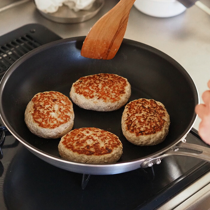 シルクフライパン・浅型30cmは家族4人分のメイン料理づくりに頼もしさを感じるサイズです。ハンバーグなら4個を一度に焼くことができるから、一度にたくさん調理したい方、週末に一週間分の作り置きをしている方などにおすすめします。シルクフライパンは浅型と深型の2タイプ、そして専用の蓋をご用意いたしました。よく作る料理やお好みに合わせてお選びください。