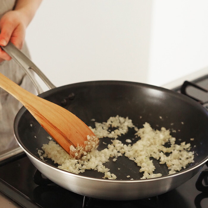アルミは酸に弱い性質を持っていますが、加工が施されたシルクフライパンならためらうことなくお好きな調理にお使いいいただけます。また、少量の油でも焦げ付かないからヘルシー料理も大得意です。