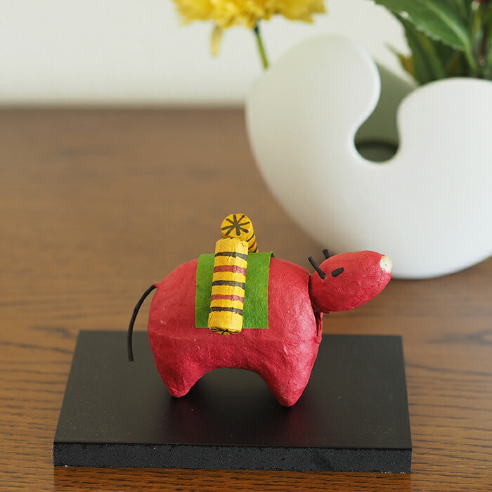 十二支の中で2番目に数えられる丑(うし)。実りのある一年を願う米俵を背負った赤いうしは、素朴なデザインながらおめでたい雰囲気が全体から伝わってくる置物です。手のひらサイズの小ささですので、好きな場所に気軽に飾ることができるのも現代のライフスタイルにマッチしているおすすめポイント。また、お正月飾りと違って小さくて味わいのある首振り張子の置物なら一年中飾っておくこともできます。