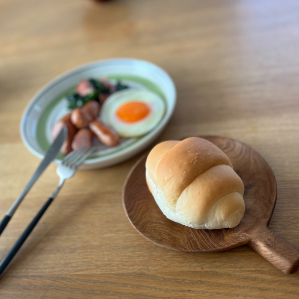 日曜雑貨のチークプレートは木のぬくもりが感じられるほっこりアイテムです。軽く、小さなハンドルがあるおかげでもちやすい。チーク材は耐久性・耐水性が高く、反りや割れにも強いので多少雑に扱っても大丈夫そう。気楽に使えます。Mサイズはパンやスイーツ、果物を盛付けたり取り皿としても。個性のある木目もオンリーワンの特別感があります。