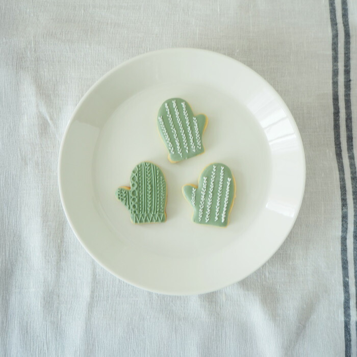 こちらはミトンのカタチのクッキー型。クッキー生地を抜いて焼いただけでも気持ちが浮き立つ愛らしさがあるけれど、さらに手をかけてアイシングでおめかししてあげると、食べるのが惜しいほどのクッキーが完成します。色やデザインなどのアレンジも自由自在。オリジナリティたっぷりのアイシングクッキー作りにトライしてみてください。