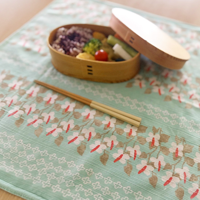 48cm×48cmは毎日のお弁当包みにおすすめです。きれいな柄を楽しめる表面にお弁当を置いて食べると、自然と気持ちも浮き立ってきます。口が閉じないかごバッグの目隠しに使えば安心感におしゃれさがプラス。