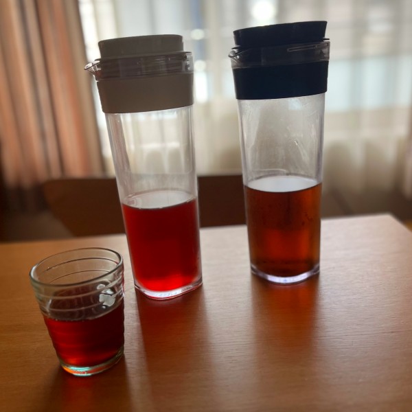 洗いやすく気軽に使えるジャグがほしいと毎夏探している私。度々入替えながら新しいものを試しています。そんな中10年近く生き残っているのがタケヤのジャグ。写真の右側に映っている紺色の蓋のジャグが10年選手のものです。こどもが落としたりぶつけているので小さな傷はありますが、気にならない程度。シンプルな構造だからお手入れが簡単。取っ手はないけれど下に向かって細身になっているので、片手で持っても扱いやすい。熱湯そのまま注げるのもうれしい、頼れる一本です。