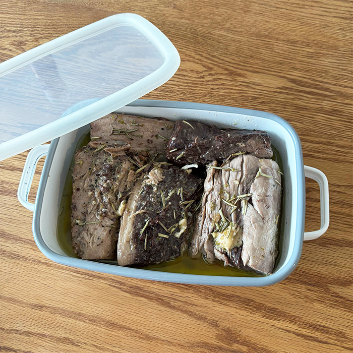 先日マグロの切り落としが破格の安さで売られていたので、思わず購入。マグロステーキもいいけど、初めての自家製ツナ作りに挑戦してみました。作ったツナは365のホーローオーブンディッシュの薄型保存容器へ。薄型なので半分はオイルに浸かりいい感じ。取手付きなので、冷蔵庫から出す時も楽ちんです。作り方は思ったほど複雑でなく、ハーブとニンニクをたっぷり効かせた自家製ツナは食べ応えもあり、リピ決定となりました。