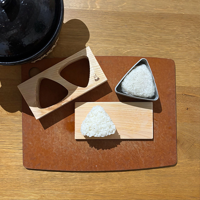 PROKITCHENオリジナルの「山一 おにぎり型 ひのき 2穴 大」は、ひのきの香りと手触りが心地よく、おにぎり作りに楽しみをプラス。ちょうどコンビニサイズのおにぎりを作ることができます。