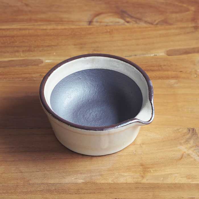 片口の器としても見栄えがよく、すり潰したスパイスを利用してドレッシング作ったり、和え物を盛り付けたり、薬味を入れたり、離乳食づくりにも重宝します。すり鉢よりも小さなサイズなので、一人ひとつ食卓に用意して食べる直前にごまをすったり、とろろをすったりしても食卓に賑わいが生まれます。