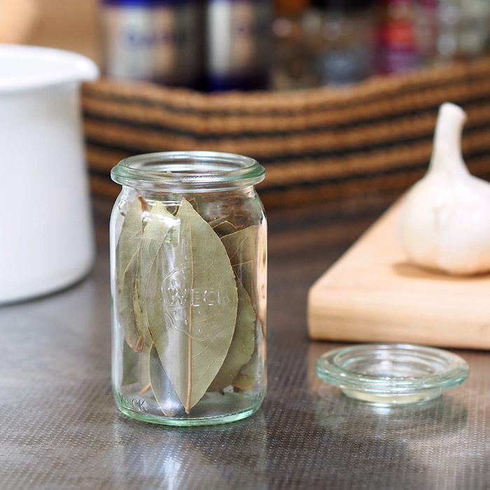 シンプルなストレートラインが特徴のキャニスターです。やや細身ですのでいくつか並べて「見せる収納」をしてもすっきりまとまります。素材のガラスにはリサイクルガラスを約50~70%使用。脱色剤などを使用していないから、WECKのキャニスターはガラス本来の薄緑色をしているんです。ミニミニサイズの140mlは料理の風味づけに使うスパイスの保存にちょうど良いサイズ。月桂樹の葉や唐辛子、八角やクローブなどを入れて並べておけば見た目も可愛らしく保存しておけます。他にもお弁当用のピックを入れたり、デザートカップとして使っても良さそう。頻繁に使うものは開け閉めが簡単なガラス蓋、手作りドレッシングの容器として使う場合は密閉性のあるシリコン蓋、ジャムの長期保存にはクリップ&パッキンセットなどなど、蓋を変えるだけで雰囲気も使い勝手も自分好みに。