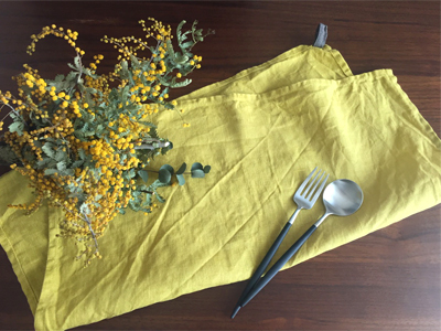 まるでキッチンにミモザの花が咲いたような朗らかな雰囲気を楽しめる、落ち着いた黄色系のクロスです。リネンは水に通すと約5~7%縮みますが、この製品は一度水通しをしているので殆ど収縮なくお使いいただけます。リネンは水を通すと強度が増す素材だからキッチンにぴったり。吸水性は綿の約4倍と言われ速乾性も。繊維の奥まで汚れが入り込みにくい特性を持っているので汚れ落ちも◎で良いことばっかり!大判サイズのキッチンクロスは食器拭き、ランチョンマット、お弁当を包む時にも使えそう♪