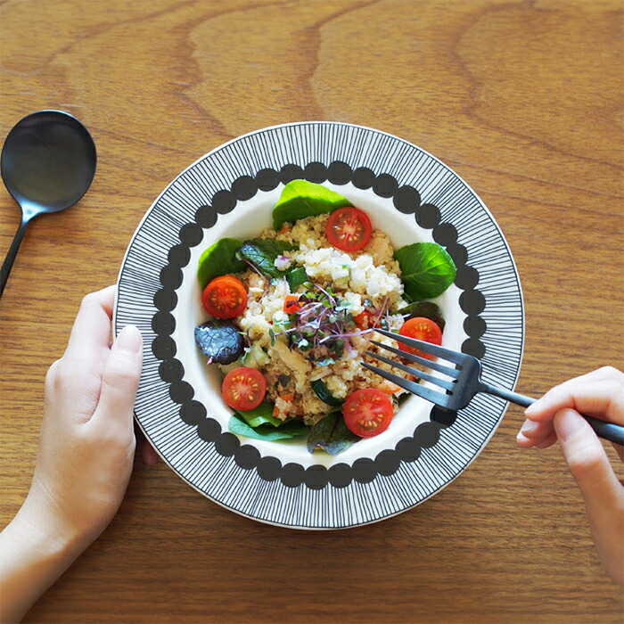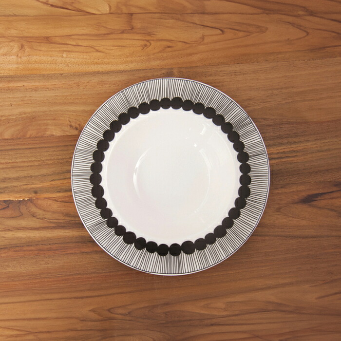大人気のシリーズにディーププレートが仲間入り!広めのリムには黒でドットとラインのパターンが施してあります。上から覗くとまるで花が咲いているように見えて、可愛らしさと大人っぽさが感じられるプレートに仕上がっています。スープやグラノーラ、サラダなどにどうぞ。