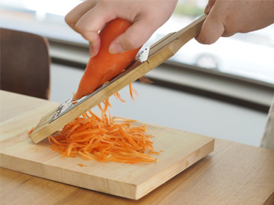 人参しりしりを作るのにかかせない道具です。包丁や通常のスライサーの千切りと食感が異なり、口当たりが柔らかになります。一本分の人参を一人でペロッと美味しく頂くことが出来ます。サンドイッチに挟んでも美味しいですよ。